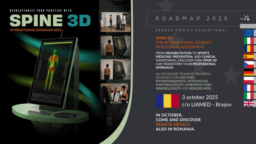 SPINE 3D – INTERNATIONAL ROADMAP 2025Redefining clinical practice with Spine 3D An advanced training programme aimed at doctors, physiotherapists, osteopaths, posturologists, chiropractors, kinesiologists and researchers who want to deepen their knowledge of Spine 3D, Sensor Medica’s innovative technology for three-dimensional